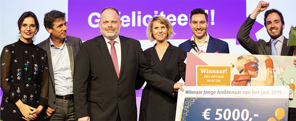 Tijdens de verkiezingsavond van donderdag 17 januari 2019 is Brandon Pouw, Beleidsmedewerker Bestuurlijke Zaken bij de Provincie Zuid-Holland, verkozen tot Jonge Ambtenaar van het Jaar 2019. De publieksprijs is gewonnen door Neeltje van der Heijden.